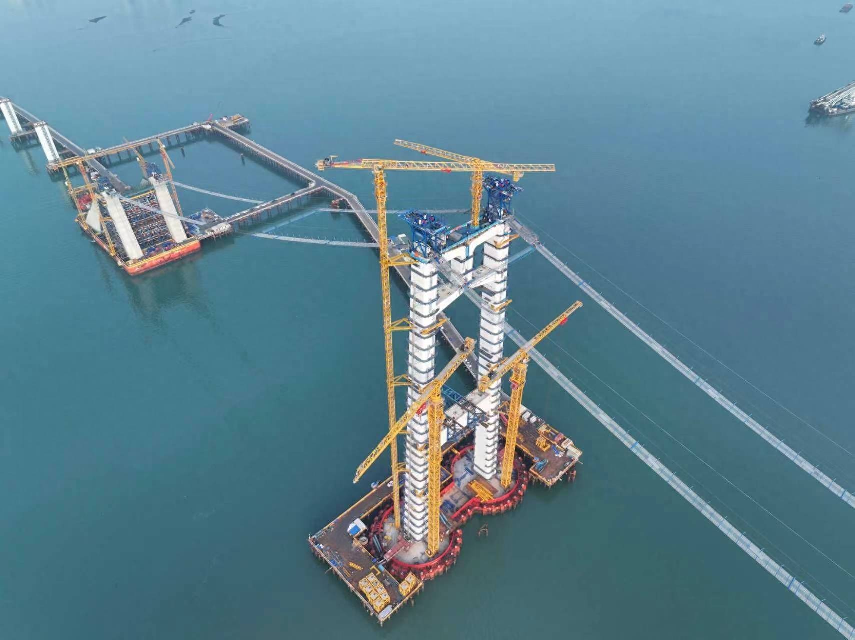 猫道架设面临海上施工环境复杂、风浪影响大、有效作业“窗口期”短等难题。项目团队引入智能监测系统,对风速、位移及结构受力情况实时监控;强化高空作业安全防护,确保了猫道架设全过程安全可控;优化工序衔接,强化资源配置,组织专业技术力量全程跟踪指导,在有限的海上施工“窗口期”内高效完成各项任务。